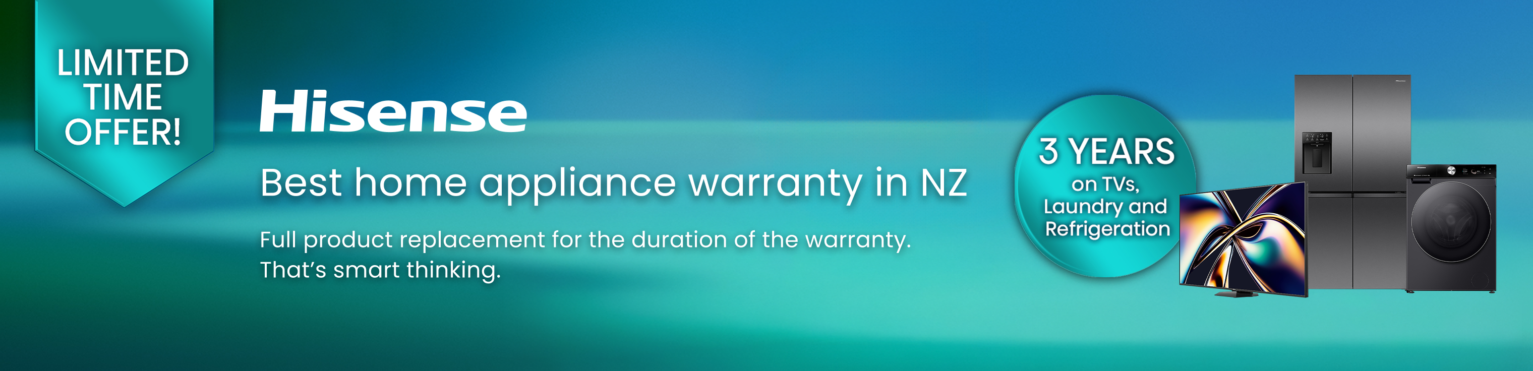 From 11 August to 31 December 2025, customers who purchase an eligible Hisense product from an authorised New Zealand retailer and register the product online will be eligible for a full product replacement (not repair) should the product fail within the standard manufacturer’s warranty period.